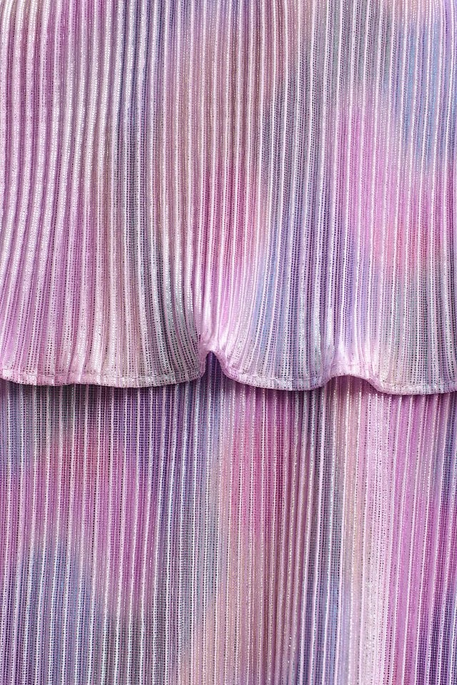 A vision in a maxi column silhouette with a sky-high slit, the Mac Duggal Tiered Plissé Lace-Up Gown stuns with flutter sleeves, a plunging v-neckline, side cutouts, lace-up back details, and a tiered skirt – all in the name of elegance.