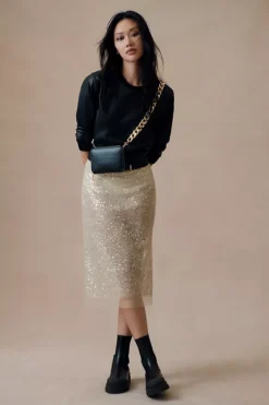 L’IDÉE Sirene Off-Shoulder Puff-Sleeve Pleated Midi Column Dress